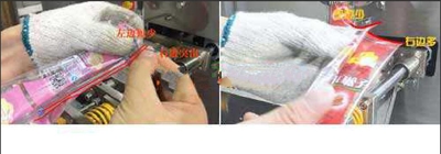 成型器是立式顆粒包裝機(jī)的重要組成部分,如果沒有調(diào)節(jié)好,制出來的包裝袋子就會不美觀,變形不對齊等。對于制出來的包裝袋通常遇到的問題就是包裝袋背封(縱封)左右不均勻(如下左圖圖)或是包裝袋子左右兩邊不均衡(如下右圖),造成這些問題的主要原因就是小型立式顆粒包裝機(jī)象鼻式成型器沒有調(diào)整到標(biāo)準(zhǔn)的狀態(tài)導(dǎo)致的。一個象鼻式成型器的標(biāo)準(zhǔn)狀態(tài)就是,成型器正面是否在中心線,側(cè)面看成型器的平行度、俯視導(dǎo)向角在橫封封合線上這三個標(biāo)準(zhǔn)。